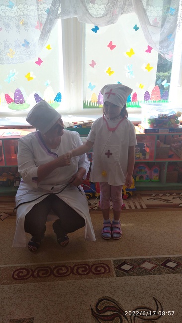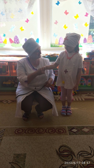 Профессия медика – одна из самых важных и востребованных в мире. Каждый из нас периодически обращается к врачам за советом и помощью. В России этот профессиональный праздник всех медработников отмечается в третье воскресенье июня. 17 июня воспитанники группы Ромашка поздравили с наступающим профессиональным праздником старшую медицинскую сестру детского сада Валентину Петровну Назину, которая с удовольствием