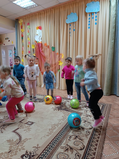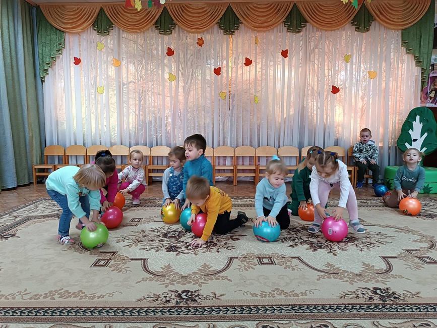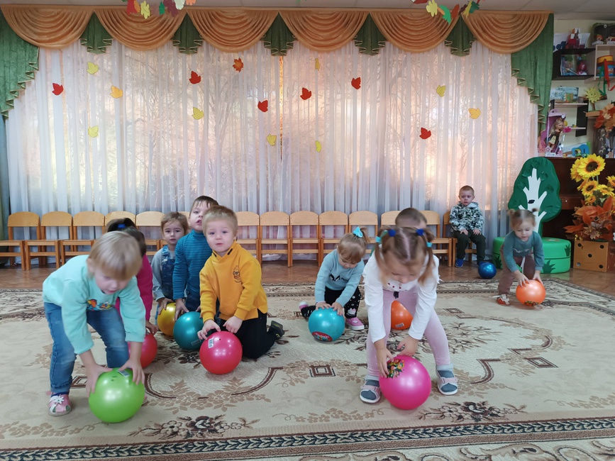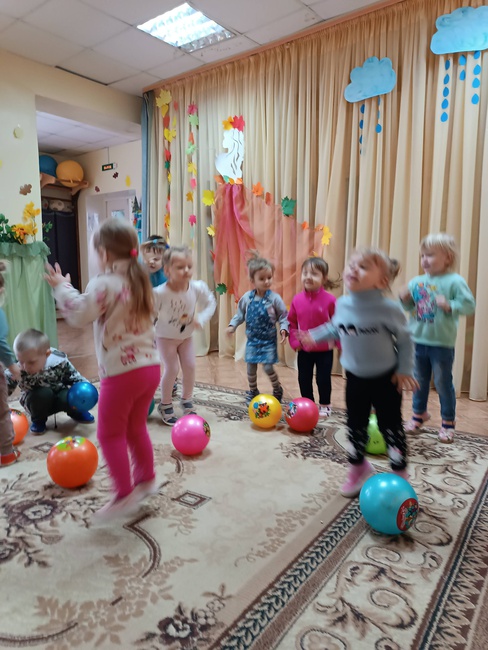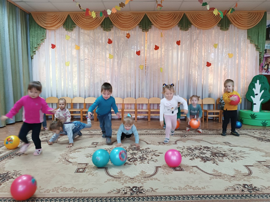 Во 2 младшей группе прошло занятие по физической культуре. Цель занятия: сохранение, укрепление и охрана здоровья детей Задачи: развивать умение действовать по сигналу воспитателя; учить энергично отталкивать мяч при прокатывании; формировать умения детей соотносить движения с текстом; развивать координацию движений; воспитывать чувство коллективизма. На занятии по физической культуре воспитанники выполняли общеразвивающие упражнения с мячом. С мячами большого диаметра выполнили игровое упражнение "Прокати и догони".