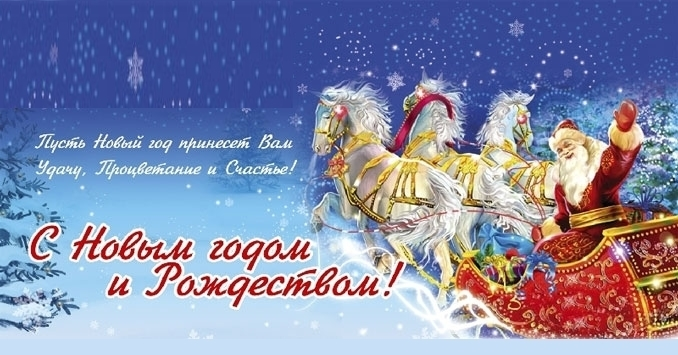 С Новым годом, с Рождеством! Пусть спешит достаток в дом, С ним — надежда и удача, Много радости в придачу. Пусть в сердцах любовь хранится, Всем желаньям вашим сбыться, Жизнь пусть полнится добром. С Новым годом, с Рождеством!