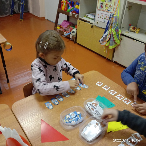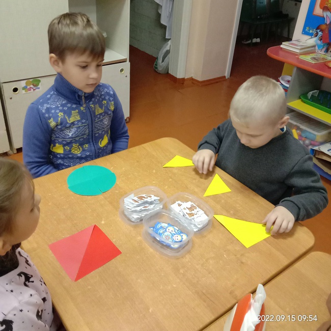 Сегодня в группе компенсирующей направленности «Смешарики» во время организованной образовательной деятельности по формированию элементарных математических представлений дети упражнялись в делении множеств на части и объединении частей в целую группу; совершенствовали умение устанавливать зависимость между множеством и его частью; учились считать в прямом и обратном порядке в пределах 5; закрепляли умение делить геометрические фигуры на 2 и 4 равные части, сравнивали и называли их; закрепляли умение различать и называть знакомые геометрические фигуры. В процессе игры дети усвоили поставленные задачи.