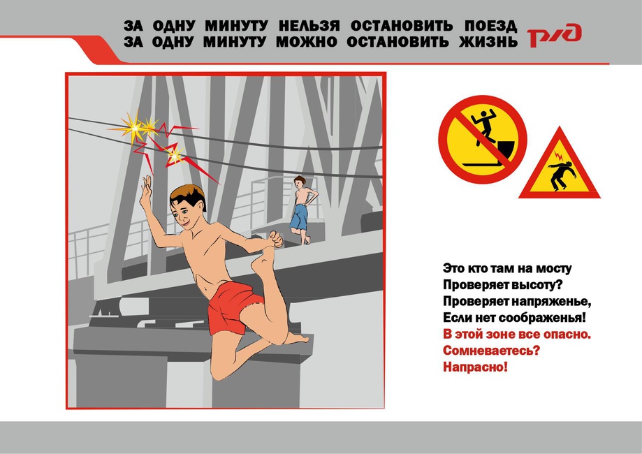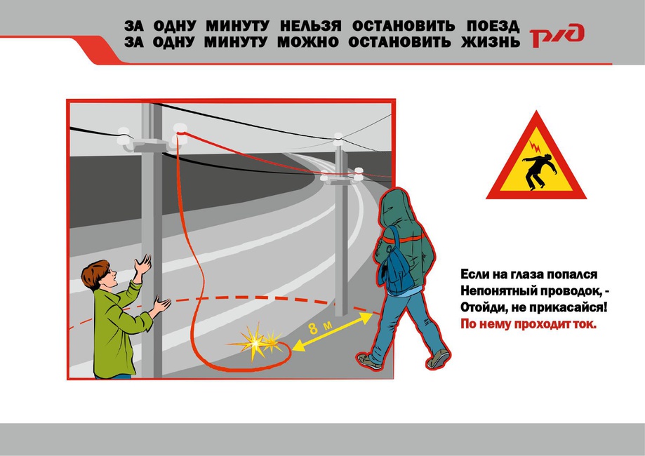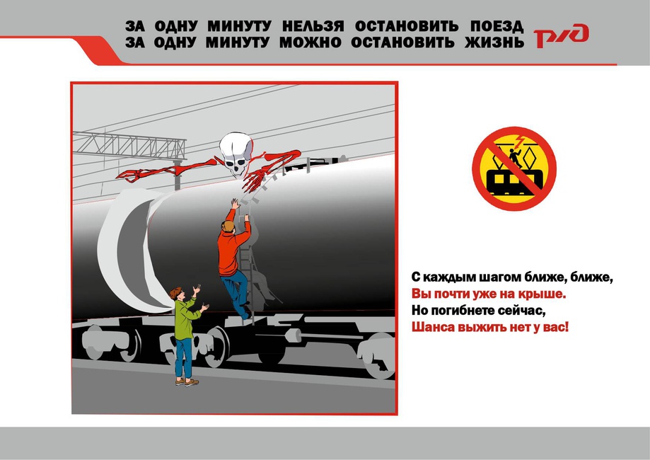 Каждому человеку нужно обязательно знать элементарные правила поведения в зоне железной дороги. От этого зависит его жизнь и судьба, а также его родных и близких. За 10 месяцев 2022 года произошло 9 случаев травмирования граждан от воздействия электрического тока контактной сети, с количеством пострадавших 12 человек, в том числе 7 несовершеннолетних, двое из них травмированы смертельно. Основной причиной травмирования граждан это грубые нарушения ими Правил безопасности на железнодорожном транспорте. Учитывая огромное напряжение в контактной сети, чтобы получить смертельный ожег, достаточно приблизиться к контактному проводу на расстояние менее 2 м. Поэтому все вагоны, стоящие на путях под контактным проводом, уже являются зоной повышенной опасности и подниматься на крышу вагонов - заранее подвергать себя на гибель. Будьте внимательны и берегите себя!