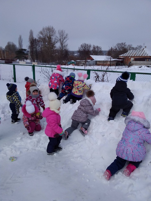 Зима пришла - много снега принесла Детям на радость- поиграть в сладость Чтобы бабу снежную слепить, И всех прохожих удивить. Прогулки зимой – не только прекрасное время для наблюдений за красотой природы, но и время развлечений на открытом воздухе и замечательный способ оздоровления.Во время прогулки дети получают заряд бодрости и хорошего настроения,поддерживается интерес к физическим упражнениям, к тому же совместная деятельность развивает социальные навыки и воспитывает дружелюбие, чувство ответственности, учит быть терпимыми друг к другу. Румяные щечки, блестящие глаза и отличное настроение – такой результат прогулок зимой.